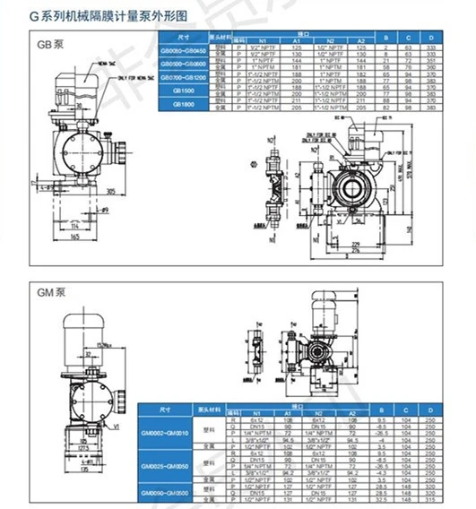 GM系列计量泵选择ST型。GB系列计量泵选择ECC型。