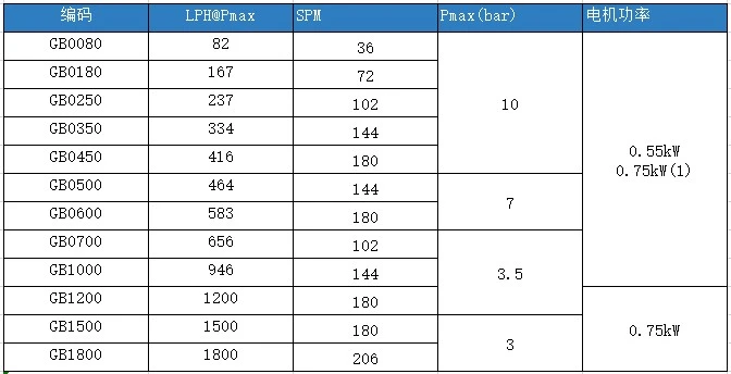 电机:GM泵一般为220W,防护等级为IP55,还可选370W;GB泵一般为550W,防护等级为IP55,还可选750W.