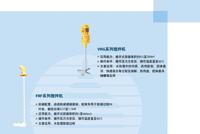 米顿罗搅拌器VRG,FRF系列是在原米顿罗搅拌机的基础上,拓展开发的标准搅拌 机系列。