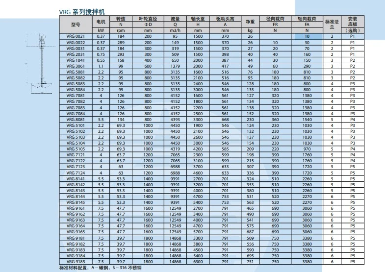 米顿罗搅拌器VRG,FRF系列的驱动部分由IEC标准电机或知名品牌齿轮电机构成, 轴和叶轮有多种材质可供选择,