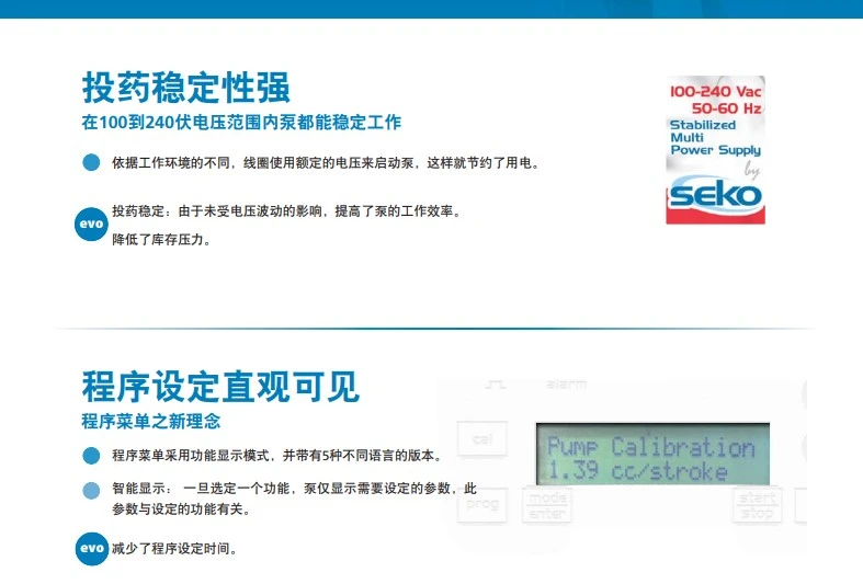 电源—在100-240伏电压范围内泵都能稳定工作,不受电压波动的影响